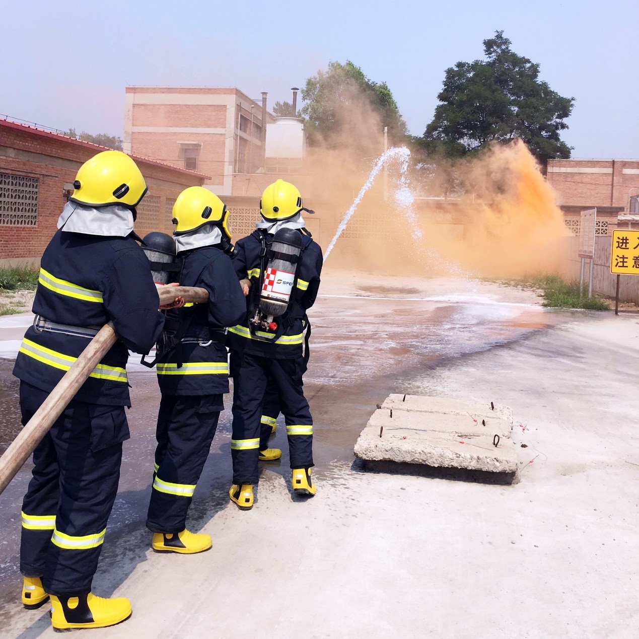 北玻有限專職消防隊接到報警后迅速到達“火災”事故現場,通過對“火災”事故現場工作人員進行情況了解,最后利用消防水搶對著火點進行控制撲救,消防水泡對周邊儲罐進行降溫,經過消防隊員奮力施救、撲救,使“火災”事故現場得到有效的控制。