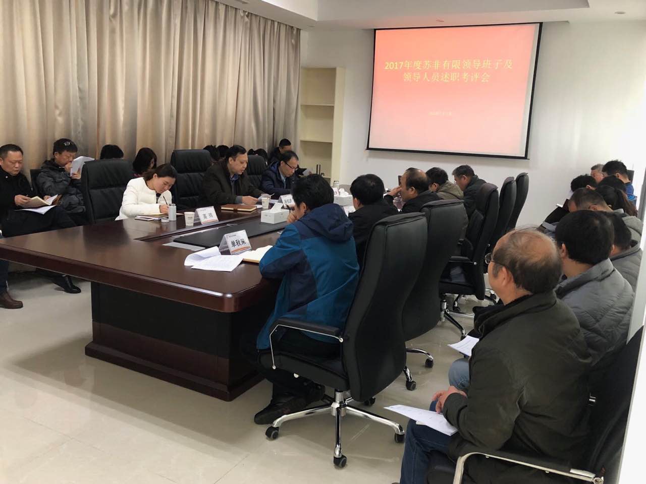 3月8日上午,蘇非有限召開了2017年度領導班子考評會,公司中層及以上人員、黨支部書記及職工代表參加考評會。中材科技黨委書記宋伯廬、人力資源部部長徐波濤、黨群工作部副部長高瑋參加會議。