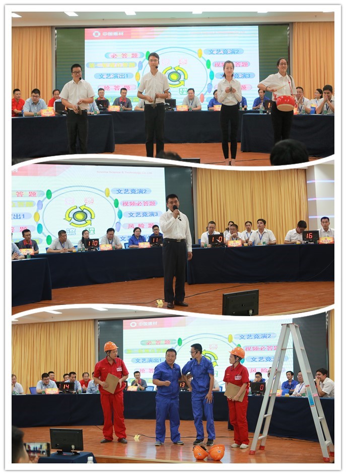 本次競賽,由各單位推薦選送共有9支代表隊參賽,分別是中材葉片、泰山玻纖本部、泰山玻纖子公司、中材鋰膜、南玻有限、北玻有限、蘇非有限、蘇州有限、成都有限代表隊,代表隊成員分別由安全管理人員、生產管理人員、工藝技術人員3人組成。比賽采取必答題環節、搶答題環節、風險題環節,限時進行答題,競賽內容涵蓋安全法律法規、操作規程、安全管理等方面知識,同時在比賽現場還增加觀眾互動答題環節和安全文藝演出,職工自編自演的“安全三句半”、“祝你平安演講”、安全小品等,贏得了現場職工的陣陣掌聲。