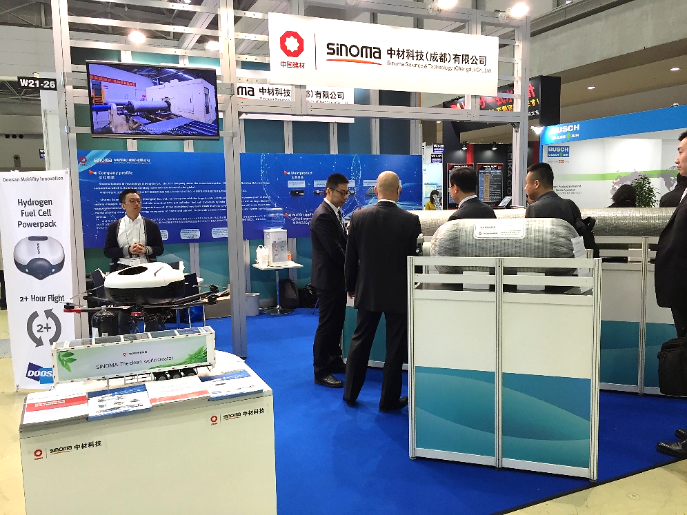 中材科技(成都)有限公司受邀參加本次展覽會,宣傳主題突出“新能源、綠色低碳、科技創(chuàng)新”的高新技術企業(yè)形象,主要展示了70Mpa/66L車用燃料電池氫氣瓶、35Mpa /320L車用燃料電池氫氣瓶(單瓶最大容積)、大口徑復合材料儲氫運氣單元及系統(tǒng)(模型)、氫燃料無人機及系統(tǒng)等產(chǎn)品。本次展會是成都中材首次在海外推出70Mpa/66L燃料電池氫氣瓶和35Mpa/320L車用氫氣瓶,一經(jīng)推出就受到市場的廣泛關注,目前,公司已經(jīng)形成年產(chǎn)2萬支氫氣瓶生產(chǎn)能力。在展會現(xiàn)場,此款新產(chǎn)品引起眾多觀眾和媒體的興趣,多家廠商前來咨詢。